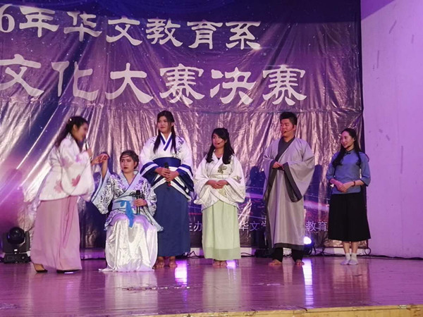 本次大赛从华文教育系四个年级的33个节目选出15个节目参加决赛。经过三个多小时的激烈角逐,华文教育系三年级C班的戏剧《铡美案》和四年级C班的话剧《红楼梦新编》喜获本次比赛的一等奖;三年级A班的戏剧《天仙配》、四年级C班的舞台剧《论语之歌》、二年级F班的话剧《差不多小姐传》、二年级D班的话剧《幸福是什么》四个节目获得本次比赛的二等奖,还有一年级、二年级和三年级的其它六个节目获得本次比赛的三等奖。