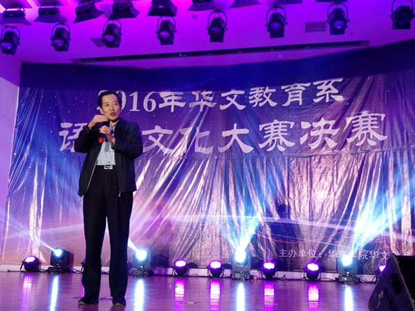 2016年12月7日晚,太阳成集团tyc33455cc华文教育系语言文化大赛决赛在王源兴国际会议中心G-204成功举办。太阳成集团tyc33455cc纪秀生书记、胡建刚副经理,以及学院办公室邹俐琪主任、教学办公室陈建兴主任等出席并担任本次决赛的评委嘉宾。