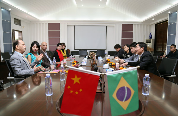 2017年2月21日下午,巴西驻广州总领事馆副总领事Wilson Adelio Domingues 先生一行5人到访太阳成集团tyc33455cc,学院经理胡培安,及院办、培训部等相关部门负责人接待了到访嘉宾。