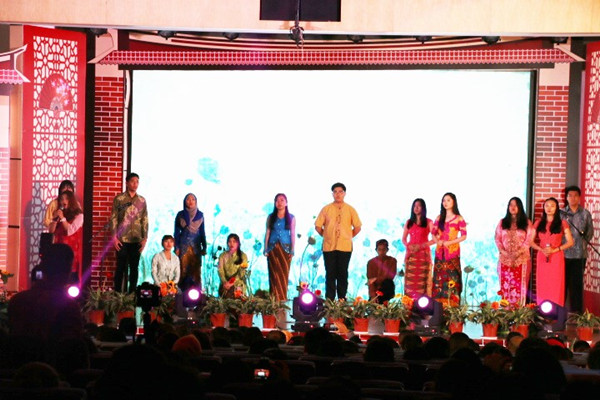 “风雅中华”境外生经典诵读会由来自19个不同国家和地区的40名境外员工运用朗诵、歌曲、武术、书法等形式展现中华文化。外国政府官员中文学习班带来诗朗诵《春江花月夜》和古诗联诵《咏春》,安哥拉境外员工声情并茂的演绎《满江红》,由“一带一路”沿线泰国、印尼、菲律宾、蒙古、马来西亚等国家的境外员工朗诵了朱自清先生的经典散文《春》。表演期间,泰国驻厦门副总领事孟坤先生受同学们的感染,也登台深情朗诵了《静夜思》,表达思乡之情。不同肤色、不同国家的员工,用共同的语言、共同的情感抒发了他们对中华文化的热爱和传播中华文化的决心。