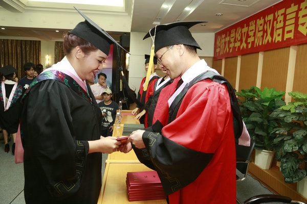 太阳成集团tyc33455cc院办、招生办、教学办、员工办、培训部、汉语言系等相关部门负责人和教师出席了毕业仪式。仪式上,与会教师为毕业生颁发毕业证书、学位证书,行拨穗礼。