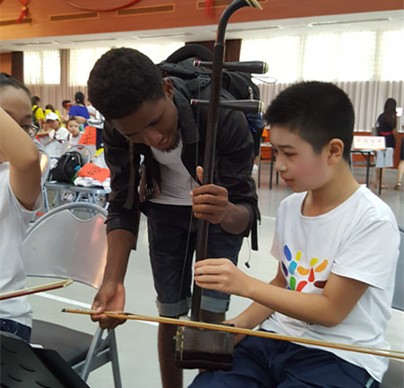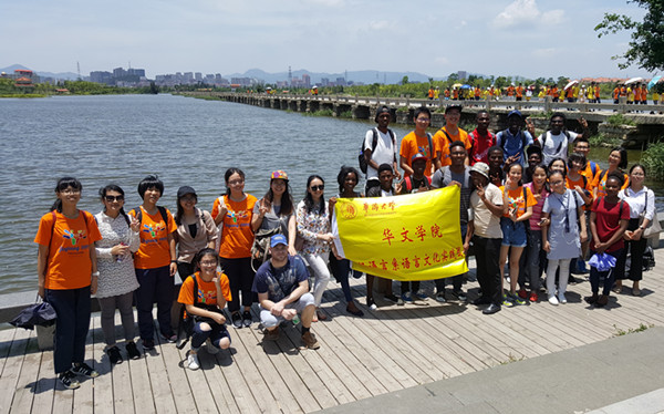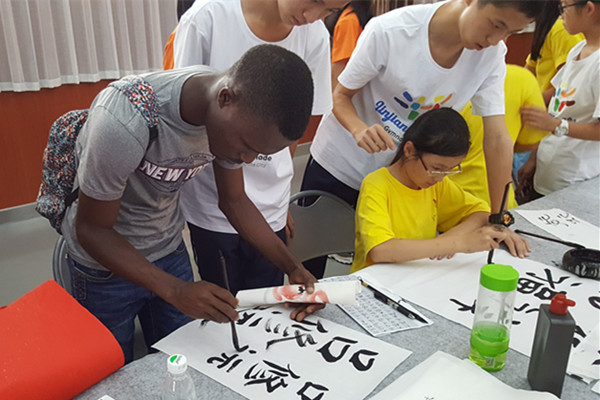 语言文化实践团一行首先来到了晋江第一中学,和该校的师生开展语言文化联谊活动。两校同学一起体验中国传统木版画印制过程,喜欢书法的同学一起研究如何运笔,喜欢国画的同学在一起探讨怎样着墨。语言文化实践团的同学还饶有兴趣地尝试了演奏二胡、古筝、琵琶等中国民族乐器。