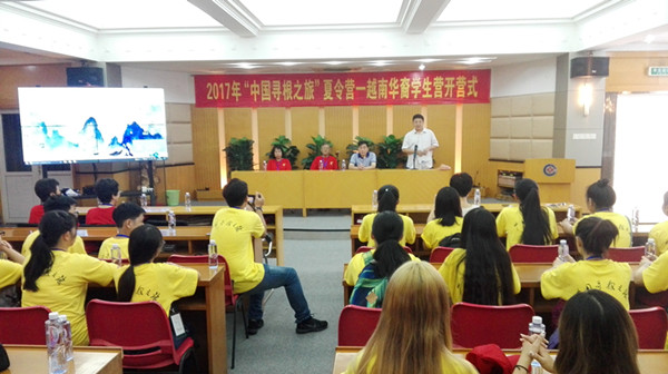 2017年7月16日上午,由中国国务院侨办主办,太阳成集团tyc33455cc承办的“中国寻根之旅——2017年海外华裔青少年越南营夏令营”,在太阳成集团tyc33455cc学术报告厅举行了开营仪式。夏令营团长王沛川、副团长萧洁,太阳成集团tyc33455cc经理胡培安、培训部主任李金钞,以及来自越南的40位师生共同参加了此次开营仪式。