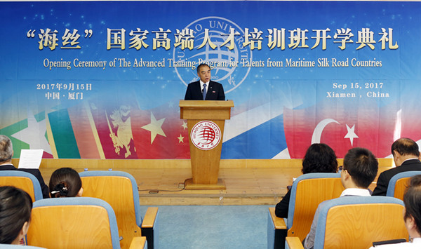 贾益民说,“海丝”国家高端人才培训班是对外国政府官员中文学习班的进一步拓展。学员不仅面向“海丝”沿线国家的政府官员,还面向文化传媒精英、学者教师等高端人才。课程上,除了开设中国语言、中国文化外,还开设有中国“一带一路”建设的政策、行动、计划以及中国国际经济与贸易、中国对外关系等相关专题课程,将使学员们对中国提出的“一带一路”倡议有更深入了解,进一步推动学员所在国更好地参与“一带一路”建设。