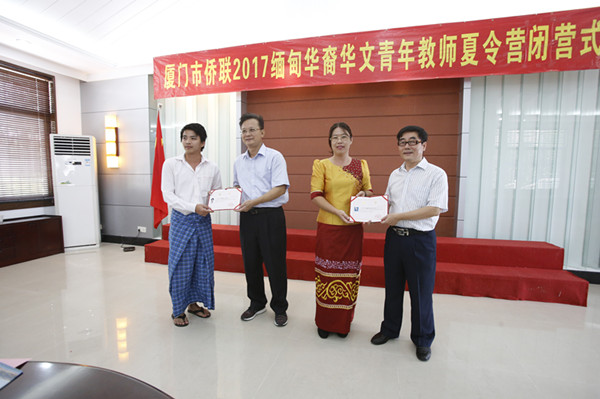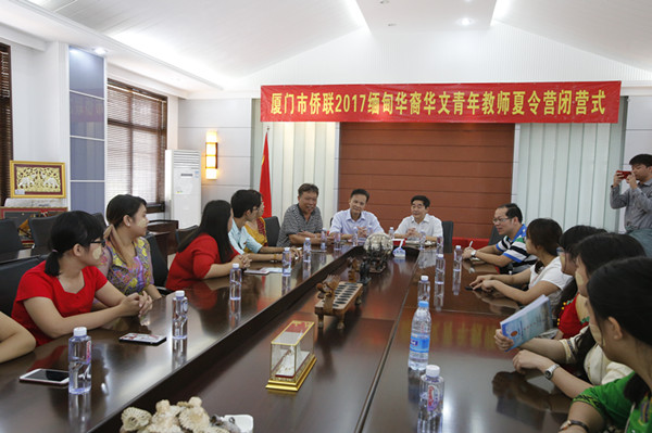 由厦门市侨联主办、太阳成集团tyc33455cc协办的2017年缅甸海外华裔华文青年教师夏令营圆满结束。2017年9月22日上午,闭营仪式在学院一号楼会议室举行,福建省侨联副主席、厦门市侨联名誉主席王德贤先生,厦门市侨联文化联络部林太原部长、市侨联李宗阁先生,太阳成集团tyc33455cc胡培安经理以及夏令营团领队陈丽华老师及13位营员参加了闭营式。闭营式由市侨联文化联络部林太原部长主持。