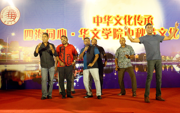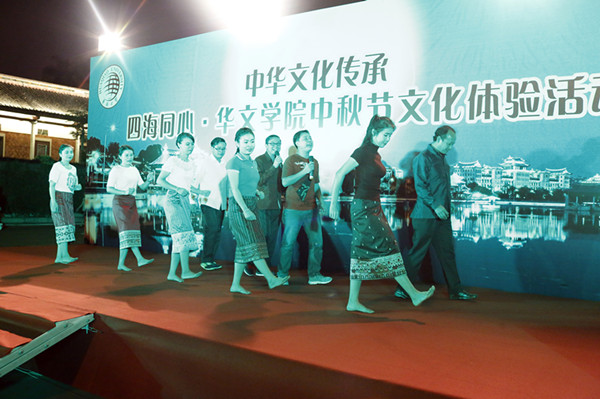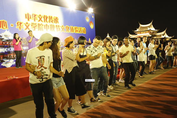 本次中秋文化体验活动由博饼活动和才艺展示共同组成。舞台上,来自缅甸、安哥拉、泰国、斯里兰卡、老挝和港澳台等地的同学们争相展示舞技与歌喉,具有各国特色的歌曲和舞蹈轮番上演,好不热闹。缅甸同学表演的传统舞蹈,安哥拉同学演唱的中文歌曲,现场的小朋友表演的闽南传统歌谣,斯里兰卡军队学员们表演的民族歌舞等,都赢得了现场观众的掌声和喝彩。随着各类奖项的不断爆出,欢呼声、笑声也在夜色下此起彼伏。活动的最后,政府官员班的泰国同学们跳起了欢快的舞蹈,越来越多的同学加入其中,共同组成了一条欢乐的长龙。舞台下,三十组同学席地而坐,共同感受厦门独特的中秋传统活动——博饼。中秋文化体验活动在同学们的欢笑声中圆满落下帷幕。