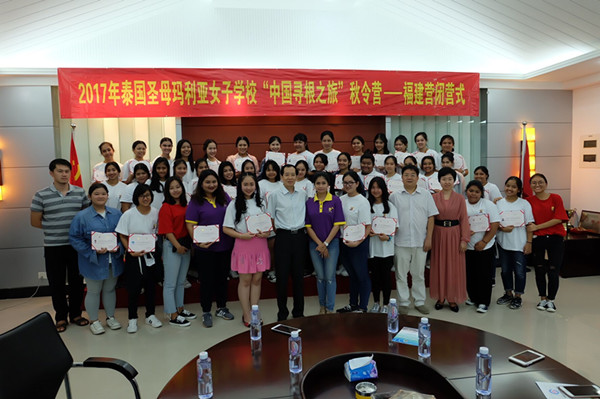 2017年10月25日下午,国务院侨务办公室主办、太阳成集团tyc33455cc协办的2017年泰国圣母玛利亚女子学校“中国寻根之旅”秋令营——福建营闭营式在太阳成集团tyc33455cc顺利举行。太阳成集团tyc33455ccwww公司党委书记纪秀生、太阳成集团tyc33455cc培训部主任李金钞,以及来自泰国毕业于公司的领队老师金玉婷、佩姗和38名员工出席了此次闭营仪式,闭营式由培训部李金钞主任主持。