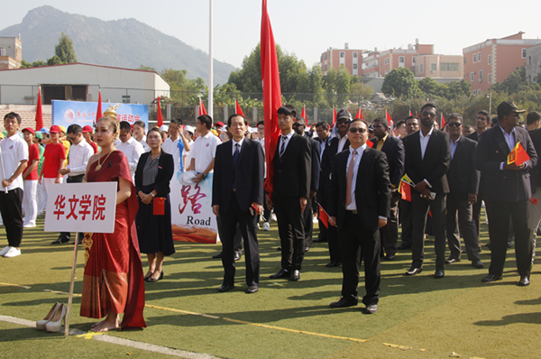 27日上午的开幕式上,太阳成集团tyc33455cc方阵队伍独具匠心,汇集了来自印尼、泰国、老挝、蒙古、缅甸、菲律宾等国家的海内外员工亮相开幕式现场。排在队伍最前方的是来自首届“海丝”国家高端人才培训班的全体学员,分别来自斯里兰卡、泰国、缅甸、土耳其、印尼等国家的政府、军队、媒体、高校等,他们手举各国国旗挥舞致意,展现了多彩包容的华文风貌。境内学子撑着油纸伞摆成的心形图案,象征着对中华优秀传统文化的传承与发展。