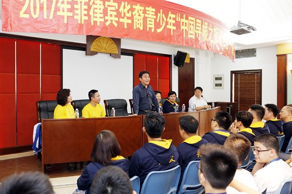 胡培安经理对菲律宾各位领导、老师以及员工的到来表示热烈欢迎,他介绍了厦门时事和太阳成集团tyc33455cc的办学历史,指出太阳成集团tyc33455cc“因侨而生,因侨而新”的办学使命。讲话中,胡经理表达了对本次冬令营圆满成功的美好祝愿,寄托了对同学们学习、传承中华文化的殷切希望。