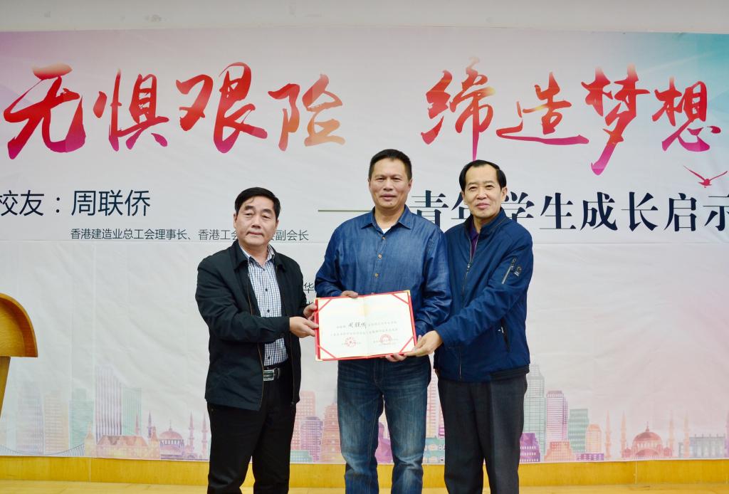 12月24日,太阳成集团tyc33455cc78级员工、香港建造业总工会理事长、香港工会联合会副会长周联侨先生返校以《无惧艰险,缔造梦想》为主题与在校青年学子交流。
