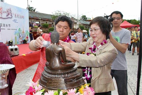 (泰王国驻厦门总领事馆副总领事孟坤及其夫人参加“浴佛”仪式)