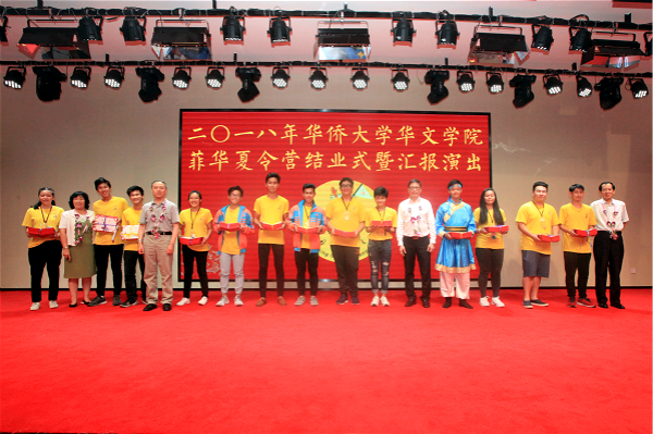 典礼结束后,菲华学员进行了汇报演出,展示50多天以来的学习成果。民族舞《锦绣中华》热烈的场面赢得了台下领导老师的热烈喝彩,除此之外还有小品、歌舞、三句半、绕口令、中国武术、朗诵、说唱、情景剧等表演形式,演出精彩纷呈。(文:陈志阳 图:颜志伟)