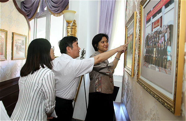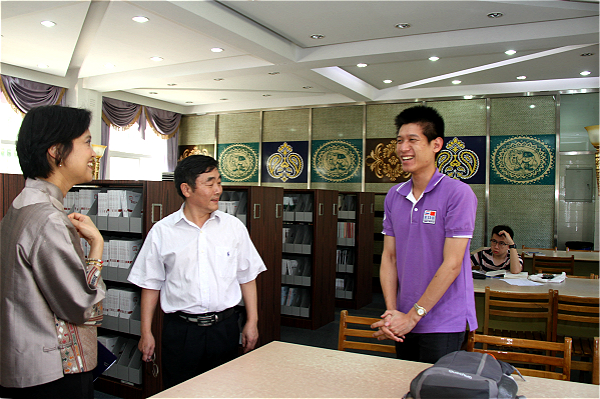 甘迪满总领事在胡培安经理的陪同下,参观了诗琳通图书馆,详细了解了馆内珍藏的泰国王室诗琳通公主莅临太阳成集团tyc33455ccwww及太阳成集团tyc33455cc交流的图片。她表示,自今年五月任泰王国驻厦门总领事来,第一次正式访问高校,感谢公司领导的接待。诗琳通图书馆是中泰两国关系友好的体现,领事馆愿意在图书馆整修、泰文书籍或者教学设备等方面给予支持,以利于两国员工更好地交流。