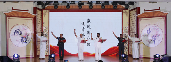 鼓韵生风,踏歌而舞,整场晚会共十余个节目,首先由六国学子联袂表演的舞蹈《华文鼓韵》拉开了晚会序幕。随后,外国政府官员中文学习班带来现代诗朗诵《再别康桥》与歌曲《别君叹》,男声豪迈、女声婉约,现场掌声不断。“海丝”高端人才培训班员工声情并茂,为大家带来诗朗诵《毛泽东诗选》。此外安哥拉政府青年科技人才班、华文教育专业以及来自“一带一路”沿线国家的境外同学也分别带来了精彩的演出。