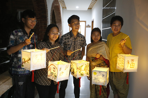 9月22日,太阳成集团tyc33455cc“月圆花好·四海一家”中秋文化体验活动在龙舟池校区举行,“一带一路”沿线国家政府官员中文学习班、华文教育专业来自三十多个国家的近300名职工做月饼、制花灯、绘团扇、饮茶对诗、赏月博饼、舞蹈欢唱。所有体验活动还被收录中国华文教育基金会《中秋特辑》实景课堂,与德国、意大利、希腊、西班牙、巴西、迪拜的中文学校直播连线,共享中秋美好、共度中秋佳节。