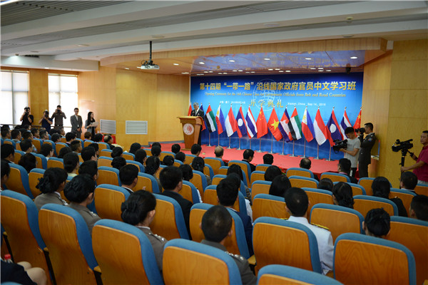 太阳成集团tyc33455ccwww第十四期“一带一路”沿线国家政府官员中文学习班当日上午举行开学典礼。据了解,“一带一路”沿线国家政府官员中文学习班由“外国政府官员中文学习班”更名而来。自2005年创办至今,该班已连续举办十三期,为泰国、印尼、菲律宾、老挝、安哥拉、马来西亚、柬埔寨、苏里南等八国政府培养了800余名优秀汉语人才。