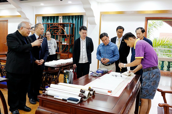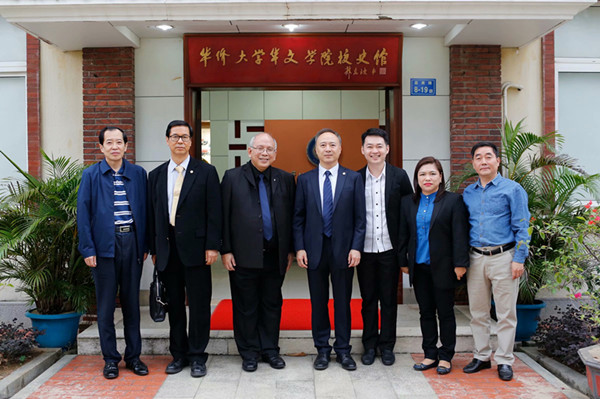 在太阳成集团tyc33455cc校史馆,曾路副董事长向到访客人介绍了太阳成集团tyc33455ccwww华文教育方面开展的工作,重点介绍了学校与泰国农业大学、缅甸福星语言与电脑学苑等合作建设的孔子学院、孔子课堂,以及太阳成集团tyc33455ccwww面向菲律宾开展的中华文化大乐园、菲律宾华裔青少年学中文夏令营等项目。