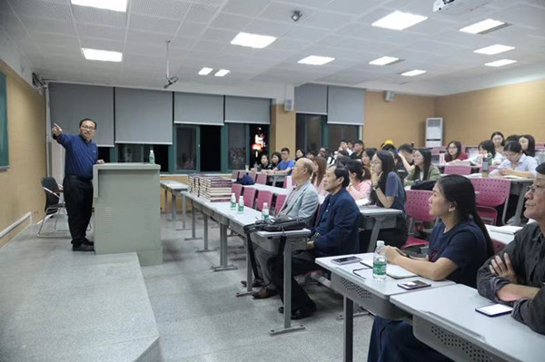 随后,李无未教授为师生们做了“近现代日本汉语学史主流意识”的精彩讲座。讲座着重从比较语言学-近现代日本语言学史“双色调”意识、方言地理学-近现代汉语学史“跨界”意识、结构主义-近现代索绪尔理论在日本的传播、文献与语言-日本人的考据意识等四个方面讲解了近现代日本汉语学史主流意识。李无未教授将东亚语言学发展的宏大历史叙事与其所掌握的日本学者语言学研究的扎实材料融合起来考察,互参互见,对日本近现代汉语学史主流意识的来龙去脉条分缕析,娓娓道来,令在场所有师生叹服。(文:胡建刚、王彩红 图:林昕)