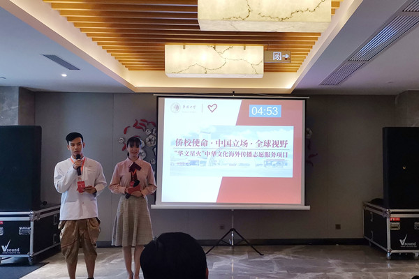 (“华文星火”志愿者代表做项目汇报及回答评委提问)