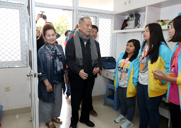 陈永栽、邱秀敏伉俪一行走进课堂,了解菲律宾华裔员工学习安排,勉励大家好好学习,并参观员工宿舍、员工餐厅等,实地了解他们在公司生活的基本情况。
