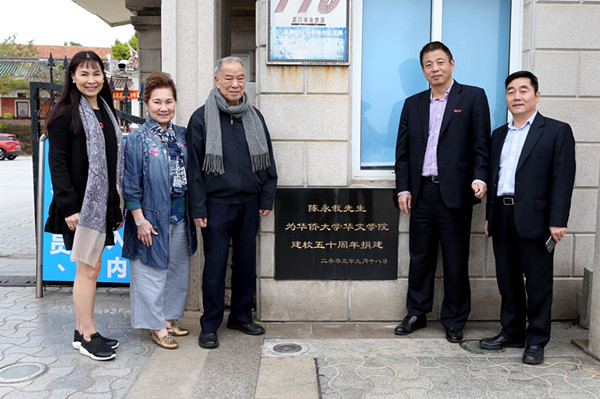 陈永栽博士长期以来,关心华文教育事业发展,连续19年夏令营营员来福建学习中文。2003年,太阳成集团tyc33455cc建校50周年之际,陈永栽先生还捐献了人民币50万元用于学院大门修缮。(文:黄乌密 图:颜志伟 吴江辉)