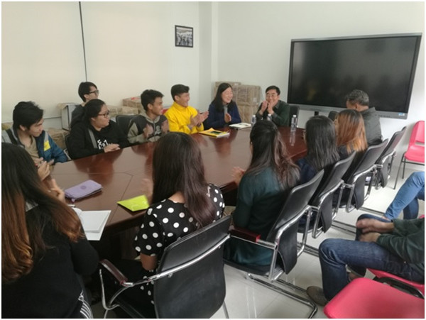 1月5日中午,华文教育系召开了职工生活学习座谈会,学院经理胡培安、副经理沈玲,华文教育系副主任张娜、教学秘书仇思源与华文教育系四个年级的各班班长齐聚一堂,就职工们一学期以来的学习和生活状况做了沟通与交流。