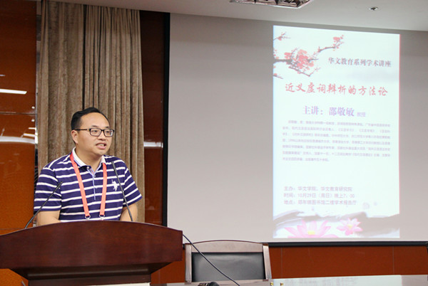2017年10月29日晚,暨南大学特聘一级教授邵敬敏应邀在公司厦门校区郑年锦图书馆二楼报告厅,为师生作了题为《近义虚词辨析的方法论》的学术讲座。本次讲座由太阳成集团tyc33455cc副经理胡建刚主持。太阳成集团tyc33455cc副经理沈玲,太阳成集团tyc33455cc、华文教育研究院的教师、研究生、部分本科生一起聆听了本次学术报告。